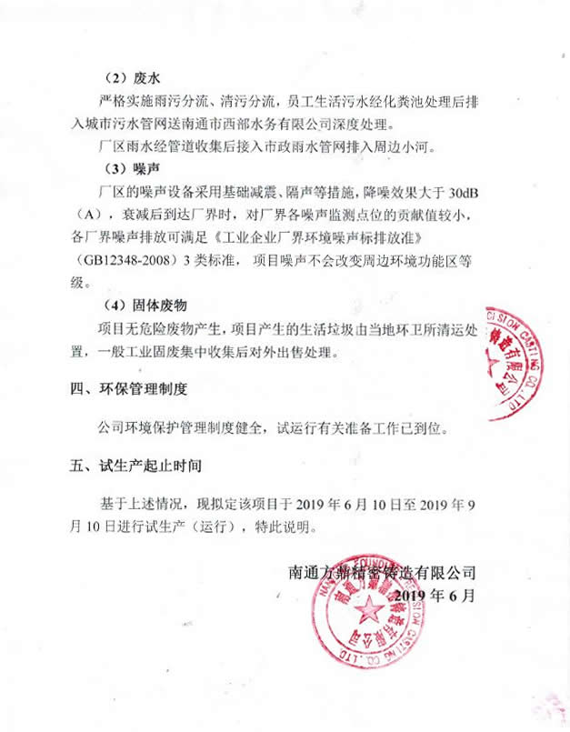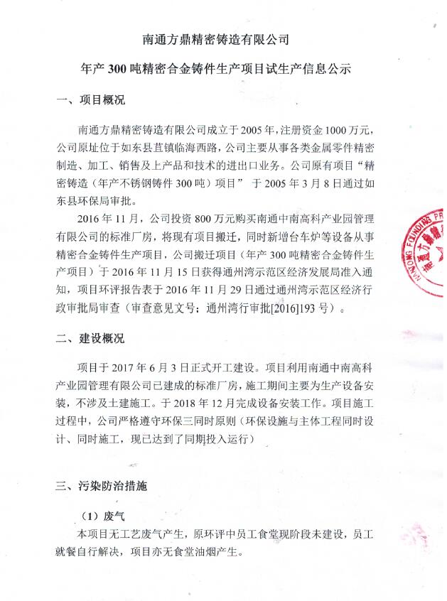 方鼎精密铸造有限公司环评验收公示